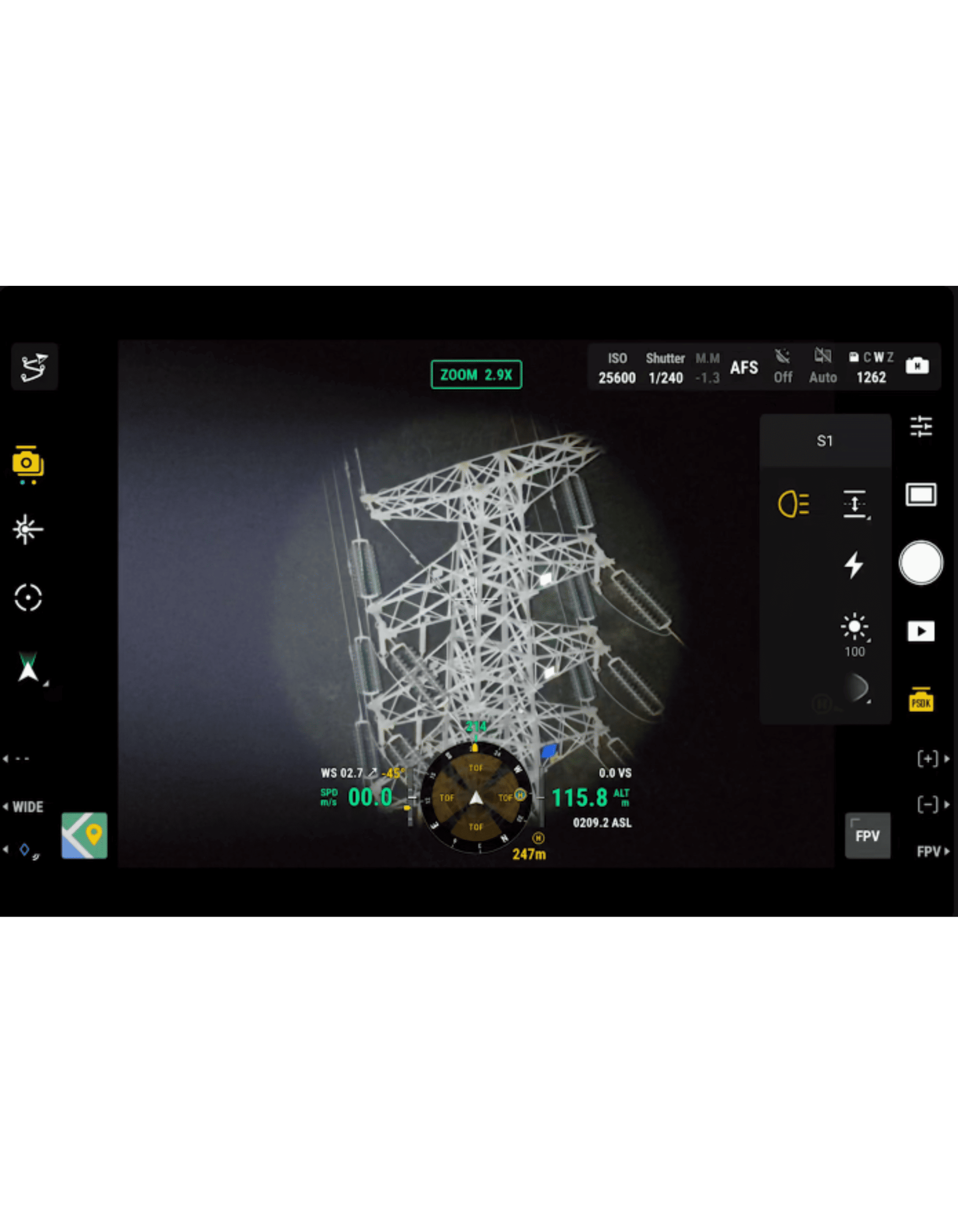 To protect the operator’s vision, the Zenmuse S1 automatically dims to 40% brightness when the drone is not in flight, reducing glare and enhancing eye safety.